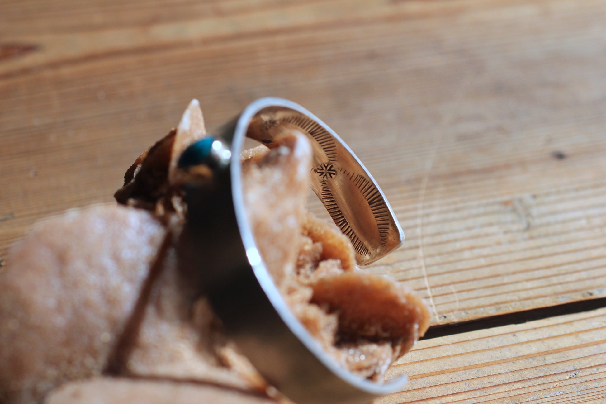 Bisbee turquoise | matte and scratch finished | 950 silver & 18k Gold